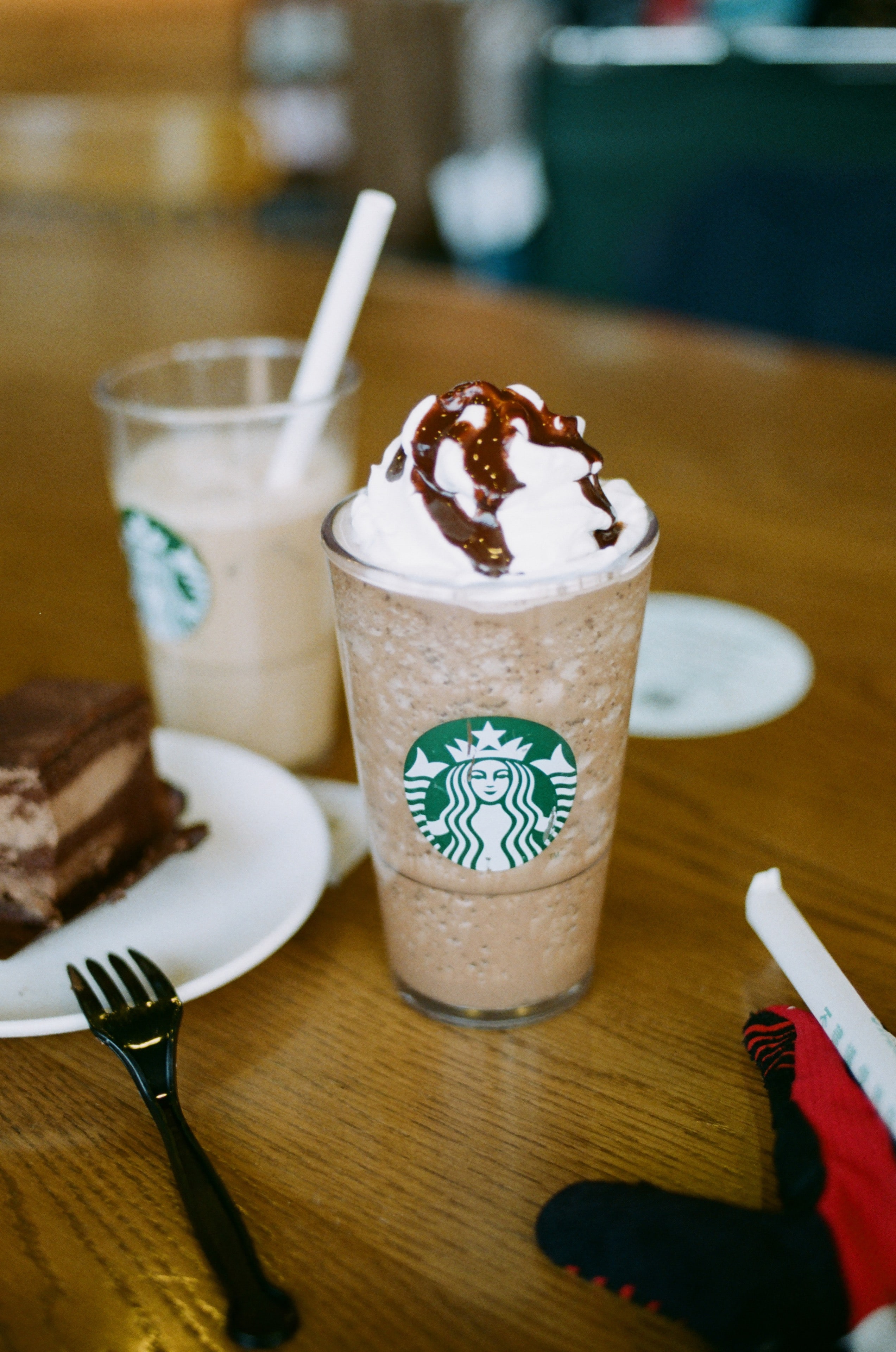 用腳踏車爬完山後,和太太經過星巴克,進去躲個太陽,吹個冷氣,吃個甜點,喝杯咖啡。