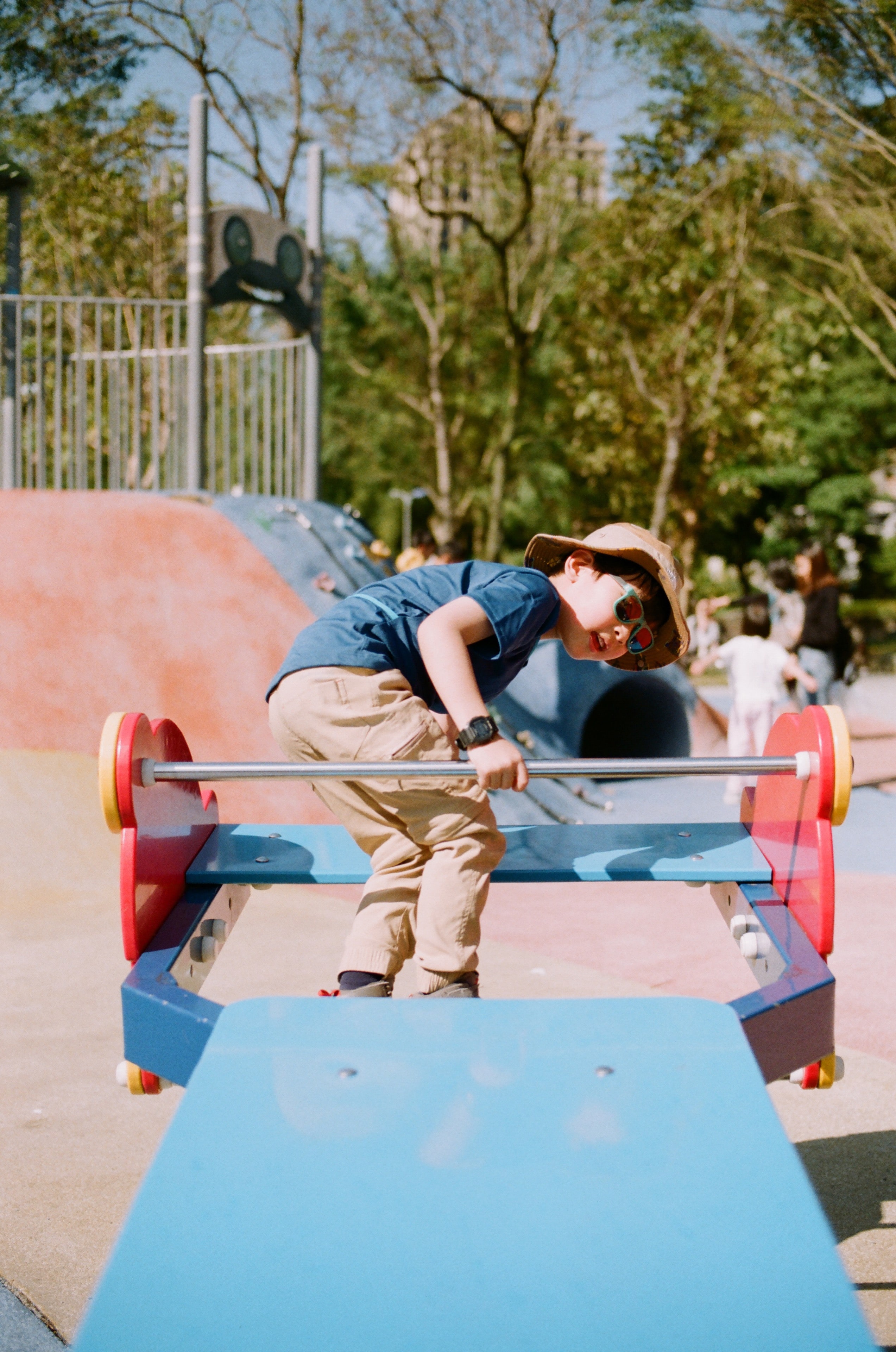 今天我們全家本來要去爬象山,結果中途經過一個公園,就在這裡玩起來了。我們家向來行程都很自由自在,可以臨時改變。