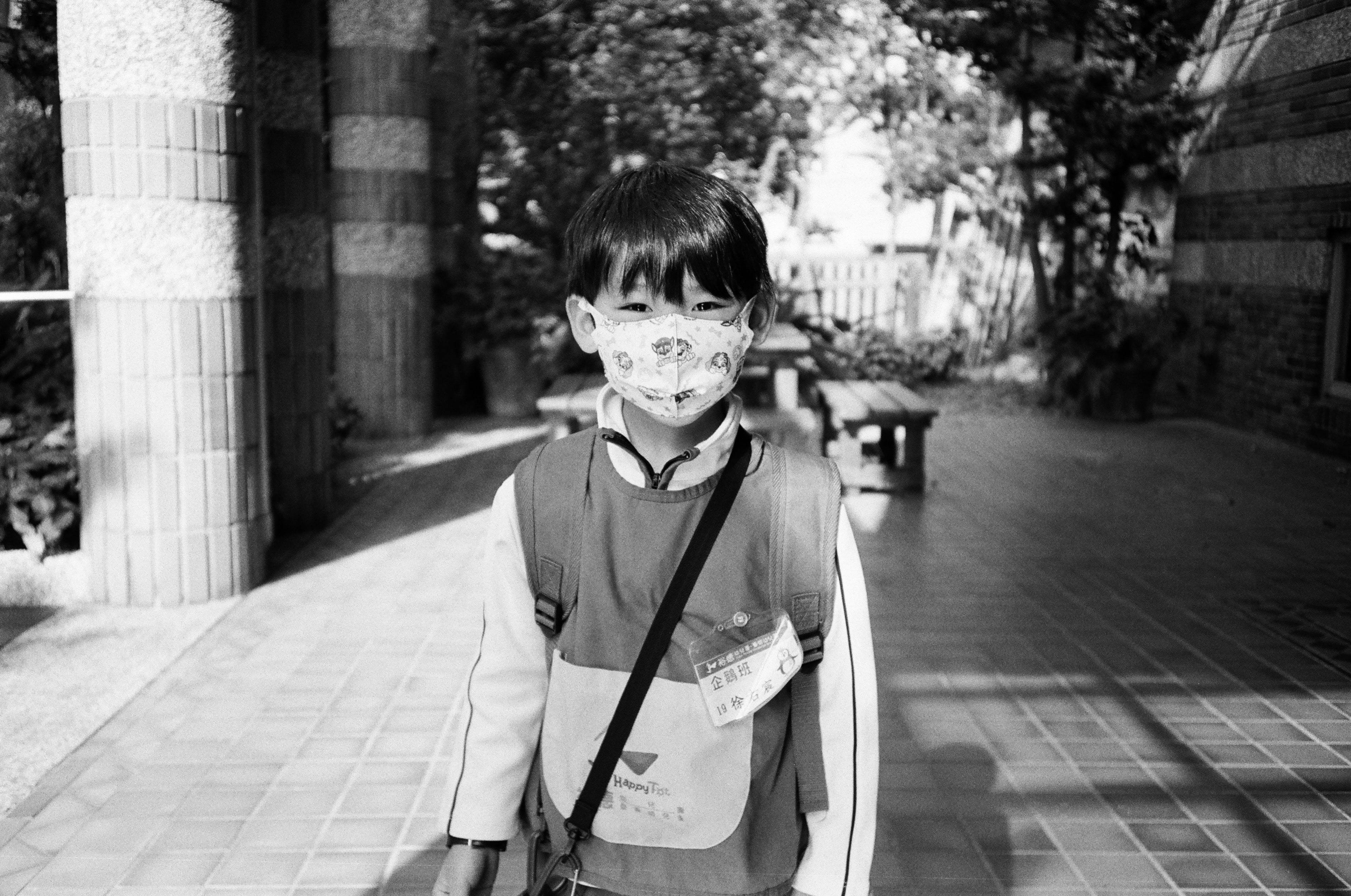 這一天的天氣晴朗,兒子很有元氣地進學校了。在我大量使用 f3.5 光圈的傻瓜相機之前,我一直擔心 f3.5 的散景效果會不會不好? 結果我發現,對於傻瓜相機來說,最影響散景的不是光圈,而是鏡頭焦距、拍攝距離,還有相機本身願不願意在 全自動的模式下優先開大光圈來拍攝,而不是透過閃光燈補光,縮小光圈。 就結果來看,我認為 Olympus Mju I 35mm f3.5 是一台非常願意用最大光圈來拍攝的傻瓜相機,因此可以很輕鬆地拍出有散景層次的畫面。
