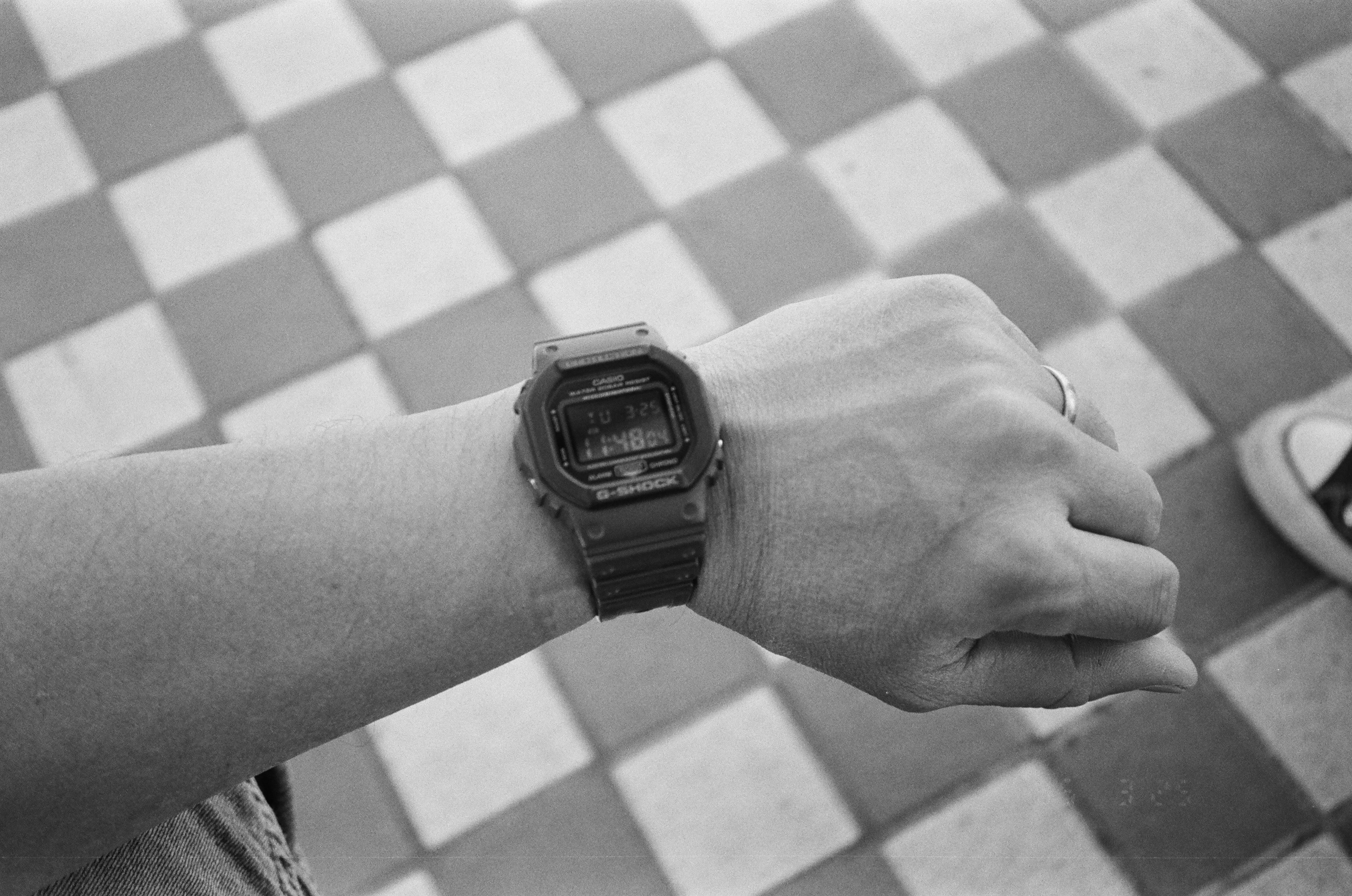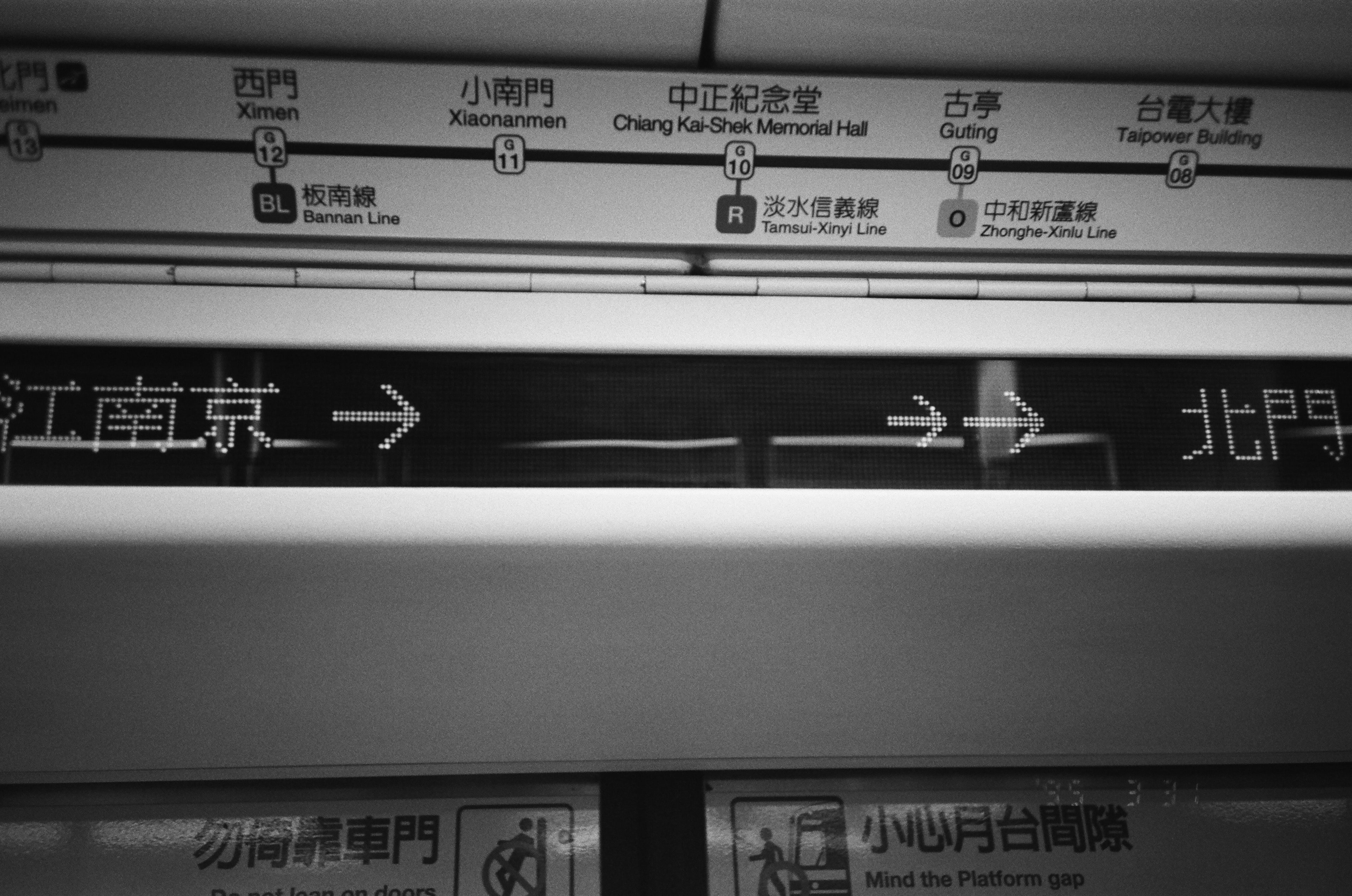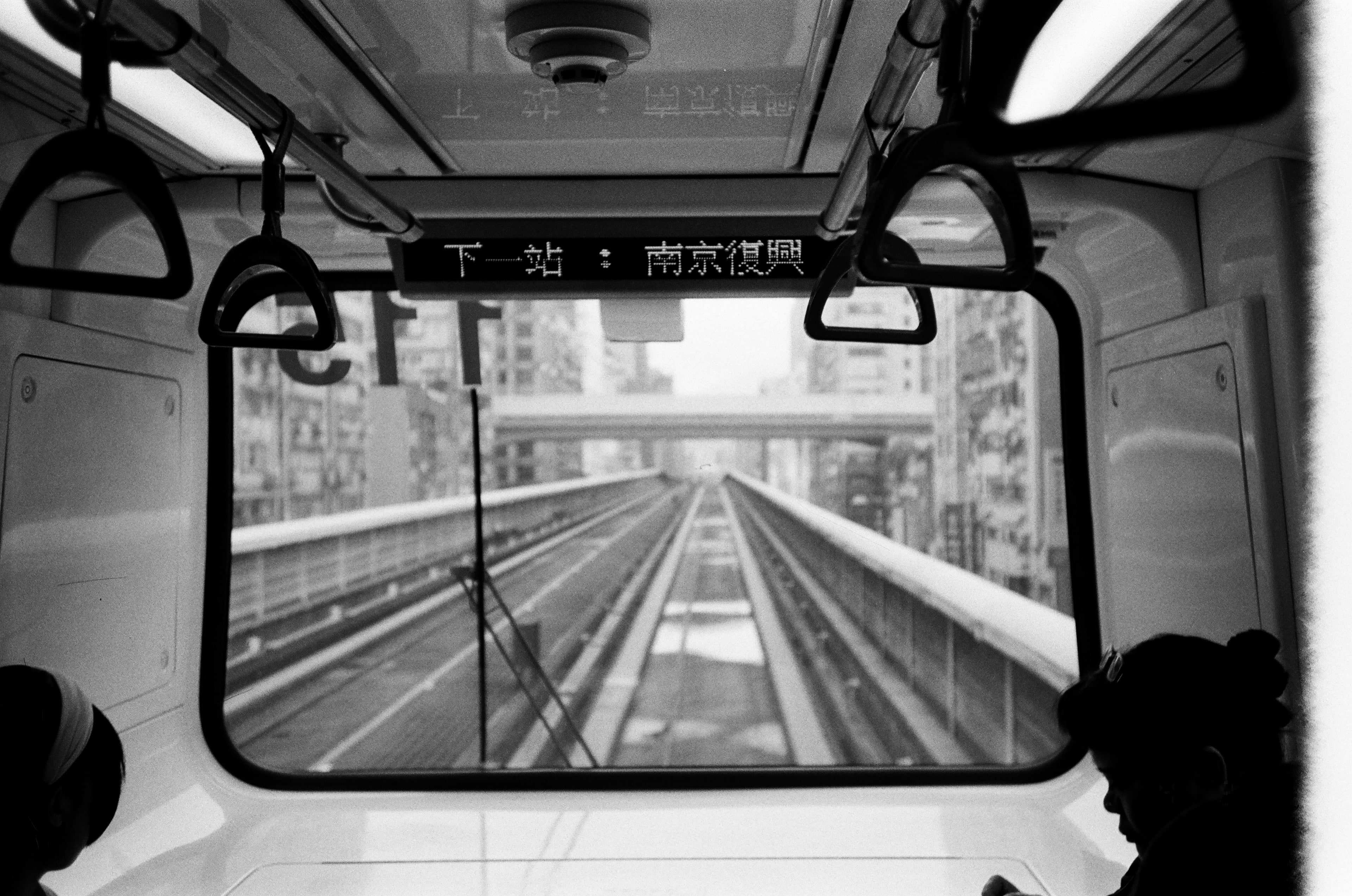 這一天,我正要搭捷運去客戶那邊開會,今天的目的地是捷運中山站。如果只能要我挑一台傻瓜相機留在身邊,我應該還是會選 Konica Big mini HG BM-300 35mm f3.5,因為它的快門觸發速度比 Olympus Mju I 來得快。Olympus Mju I 35mm f3.5 的快門,從按下到實際拍攝,會有一些時間差,稱之為快門延遲,像這張照片,我原本要拍攝的是捷運車廂內的跑馬燈站名,但因為拍攝時剛好站名在規律閃爍,而我算準時機拍下,卻因為 Mju I 快門延遲的關係,變成了空白。