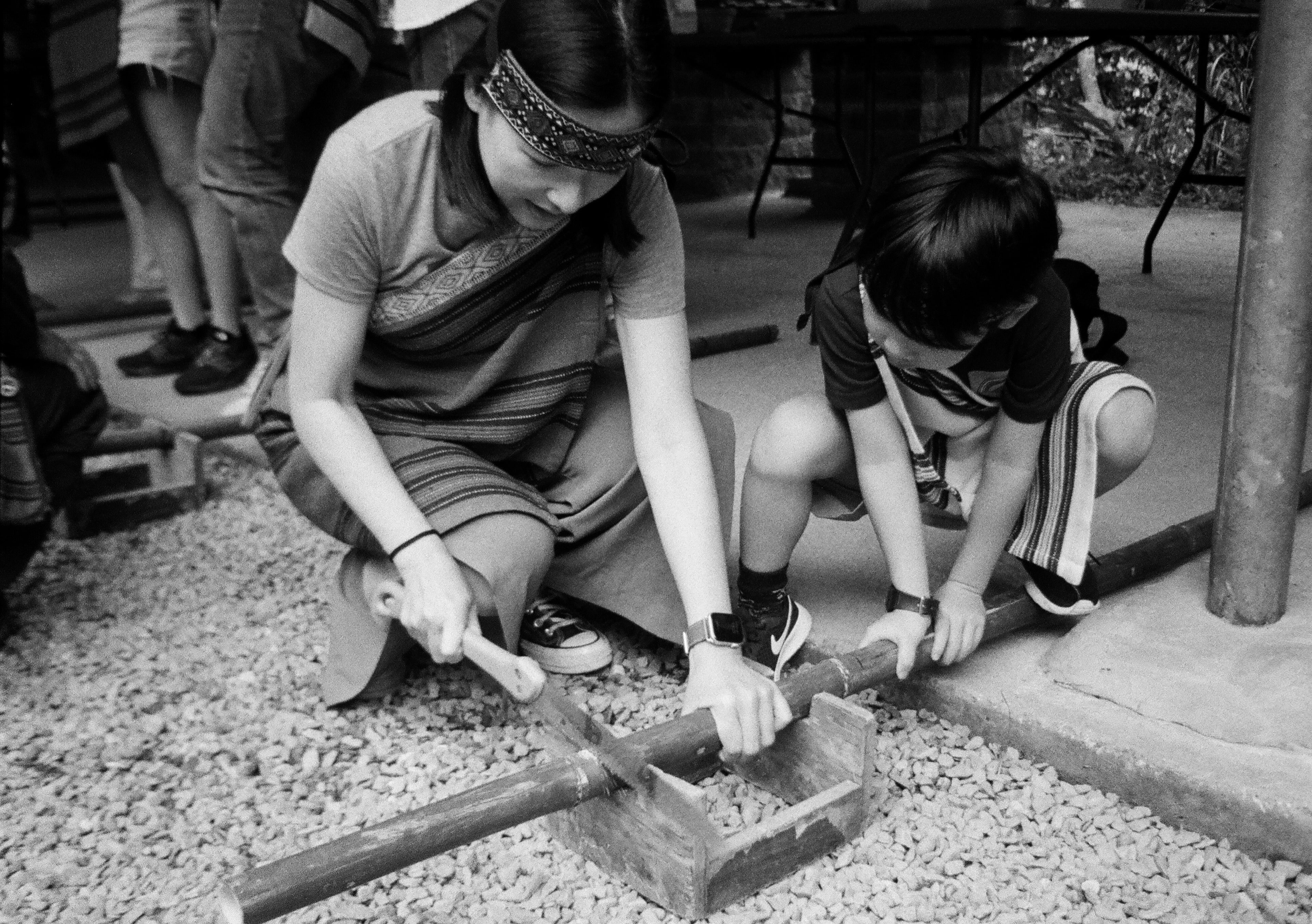這顆 25mm f4 在 f4 光圈全開時,如果是中距離的話,還是可以拍出一定程度的畫面層次感,因為整個畫面會同時容納清楚和模糊的元素,可以輕易辨認出畫面的主題或重點在哪裡。這張照片,是我們在參觀操作泰雅族的傳統狩獵陷阱,這是一個可以抓竹雞的裝置。