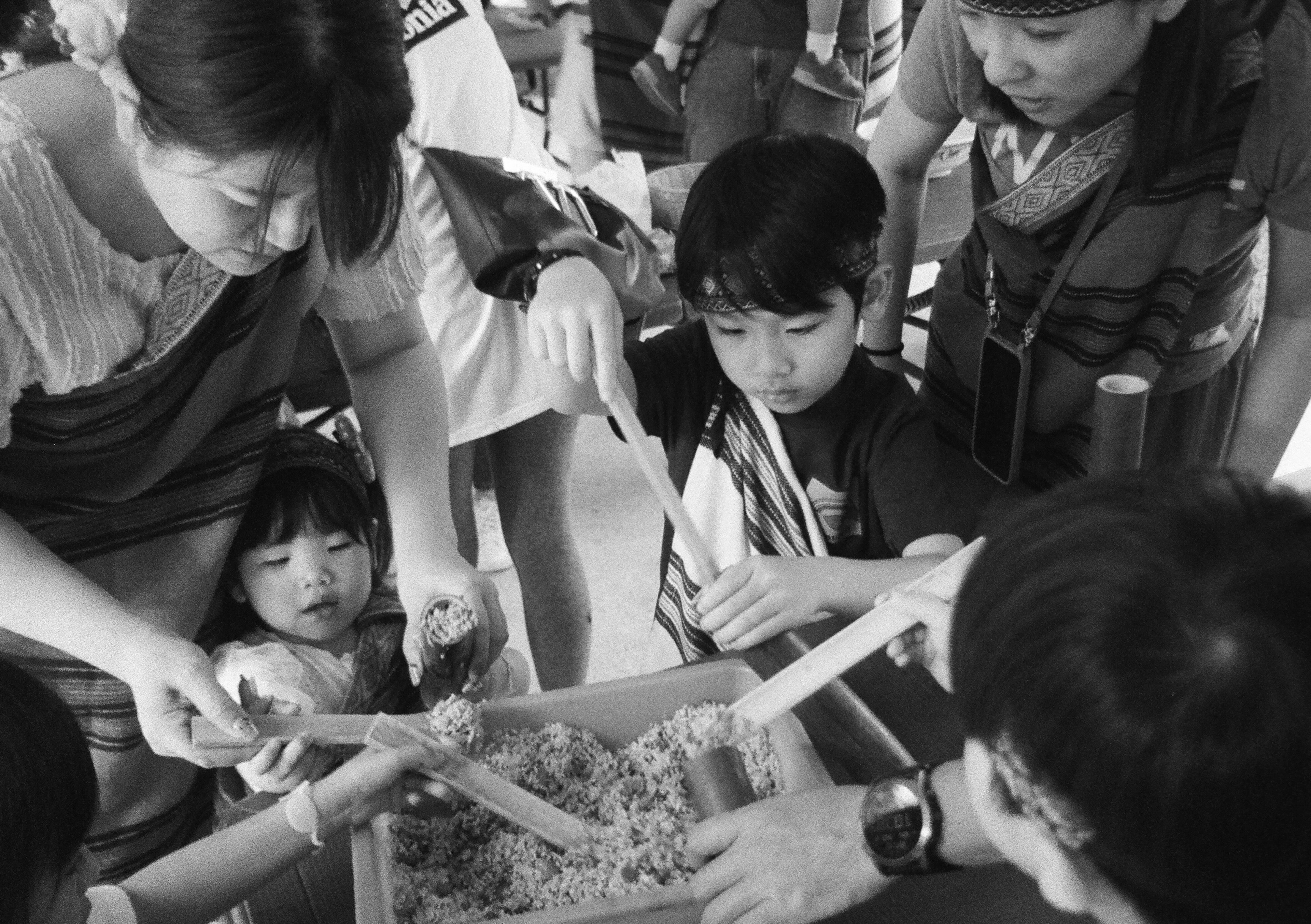 今天兒子班上有原住民文化的體驗活動,我們正在製作竹筒飯。照片中正在鋸竹子的小姐是我太太,在一旁扶著竹子的小男生是我兒子。