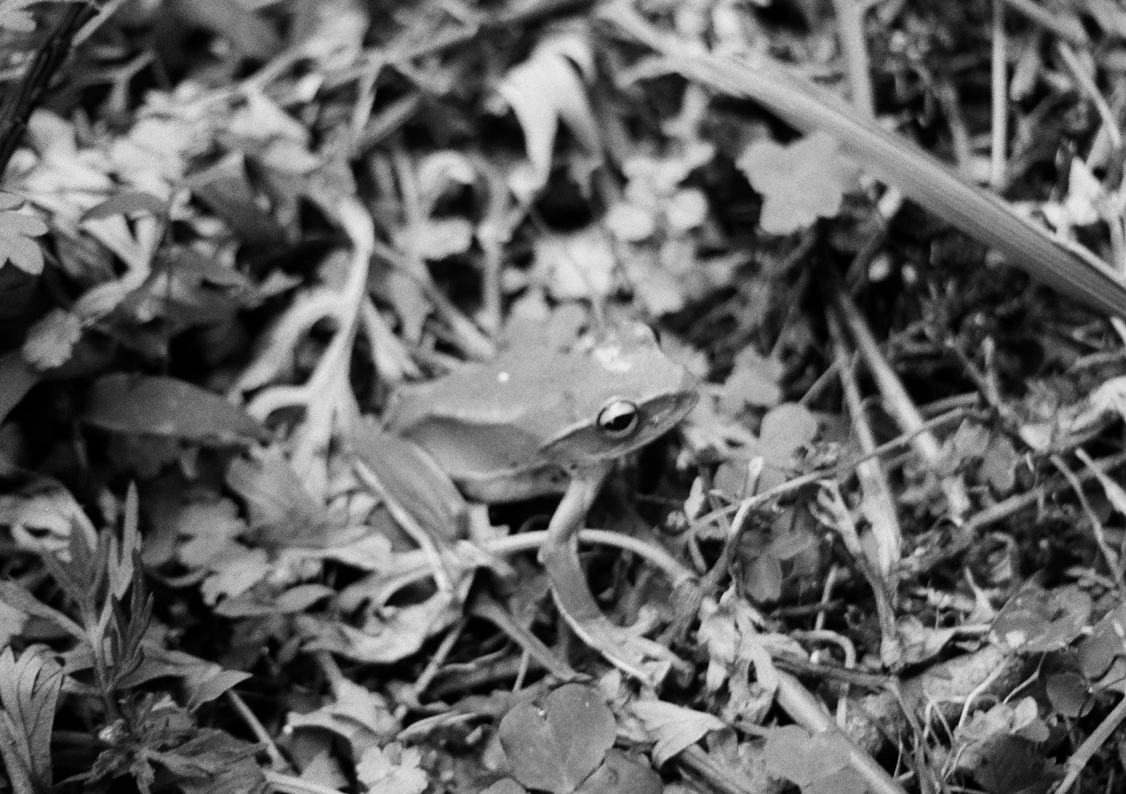 上課上到一半,旁邊看到很像是翡翠樹蛙的青蛙,體色是非常飽和的嫩綠色,這時候就會可惜自己帶的是黑白底片。你可能會想說「用手機拍不就好了?」那我會說,「用底片拍到」和「用手機拍到」的成就感不一樣啊!