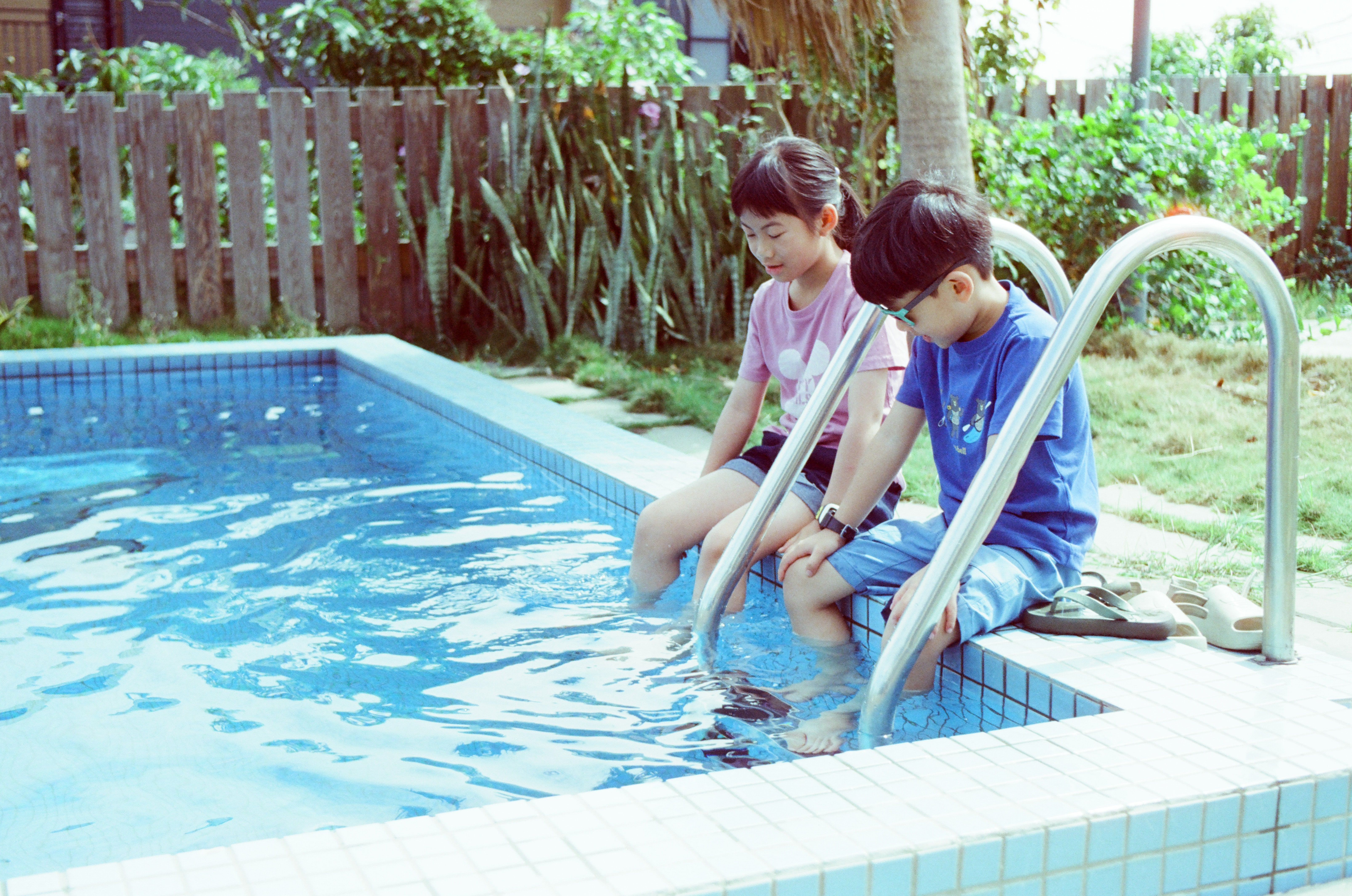 我們民宿的小游泳池。我真的很喜歡 Kodak Vision3 200T/5213 這個燈光片在日光下的樣子。