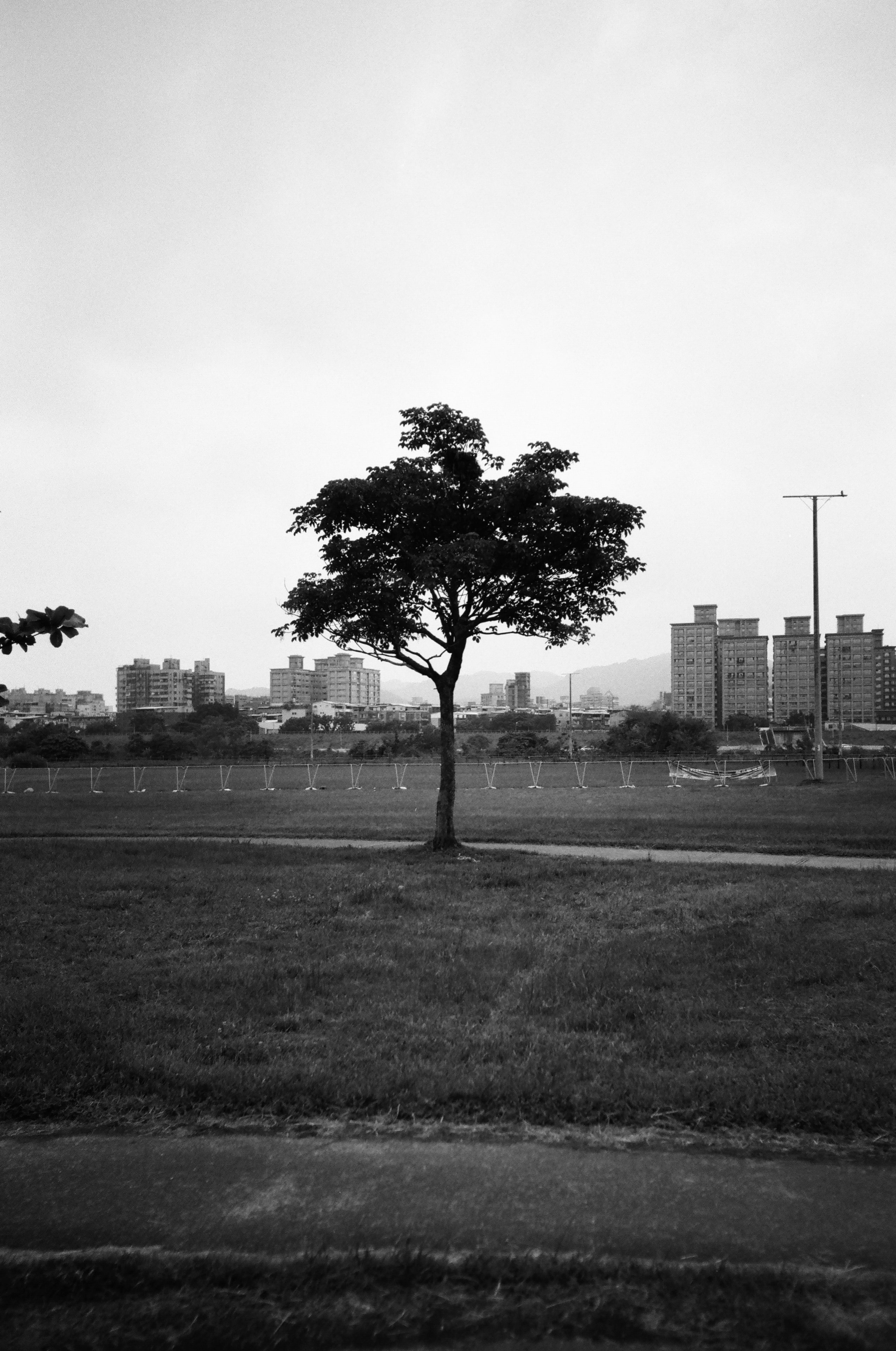 對我來說,底片攝影最令人驚嘆的就是可以用至輕至薄的機身,做到現代數位鏡頭不可及的畫面質感。Ricoh R1s 真的很薄,是我用過機身最小,但功能最強,而且價格最便宜的相機,我想,它的輕薄,跟它採用的 30mm f3.5 鏡頭有很大的關係,假如它的鏡頭不是 30mm,而是 35mm 的話,那麼可能就不會這麼小了。這張照片是某天去堤防晨跑時所經過的一棵大樹,很像國泰世華銀行 Logo。