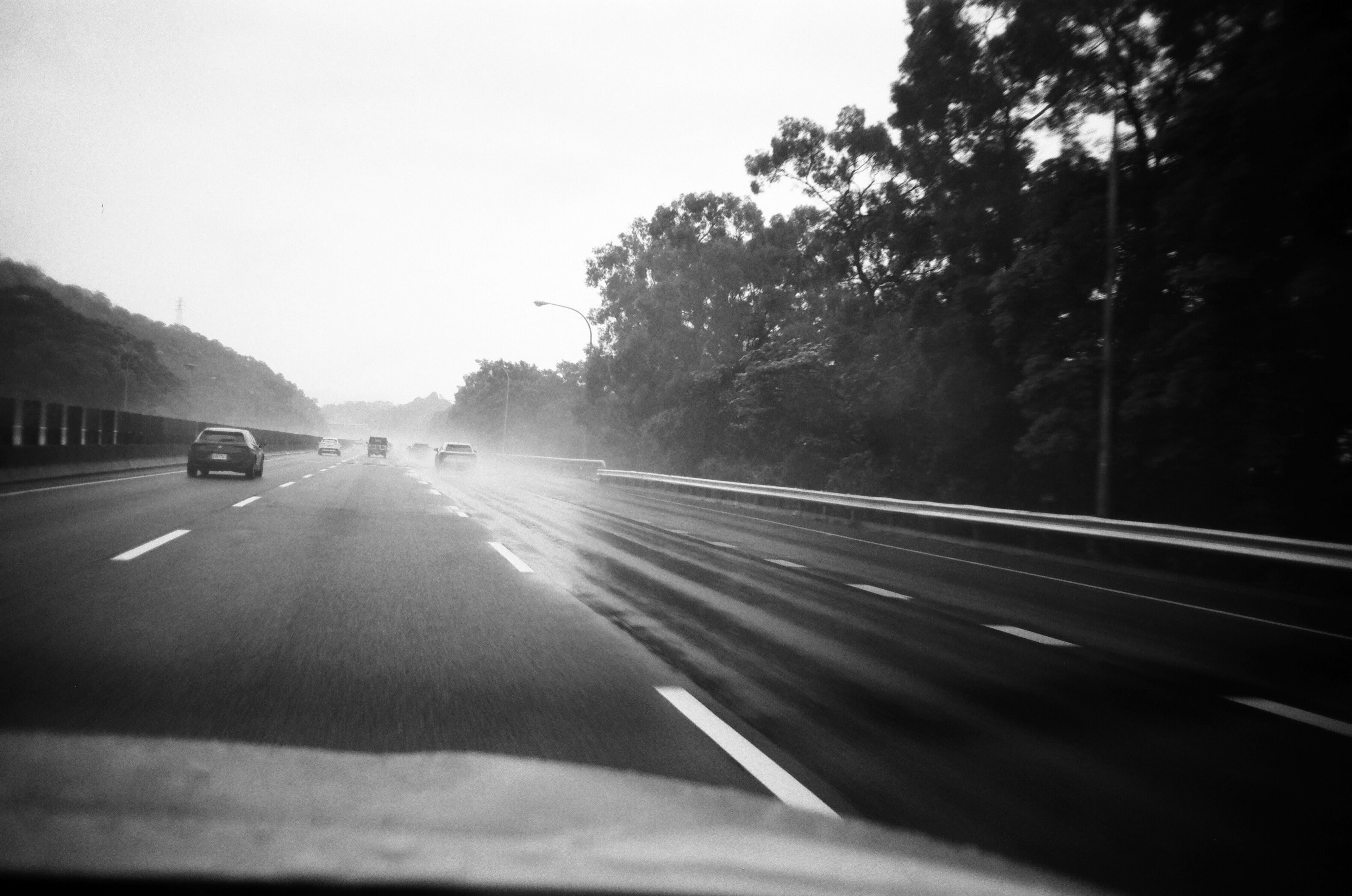 星期日的高速公路下著雨,這天來回台中上 BMX 課。