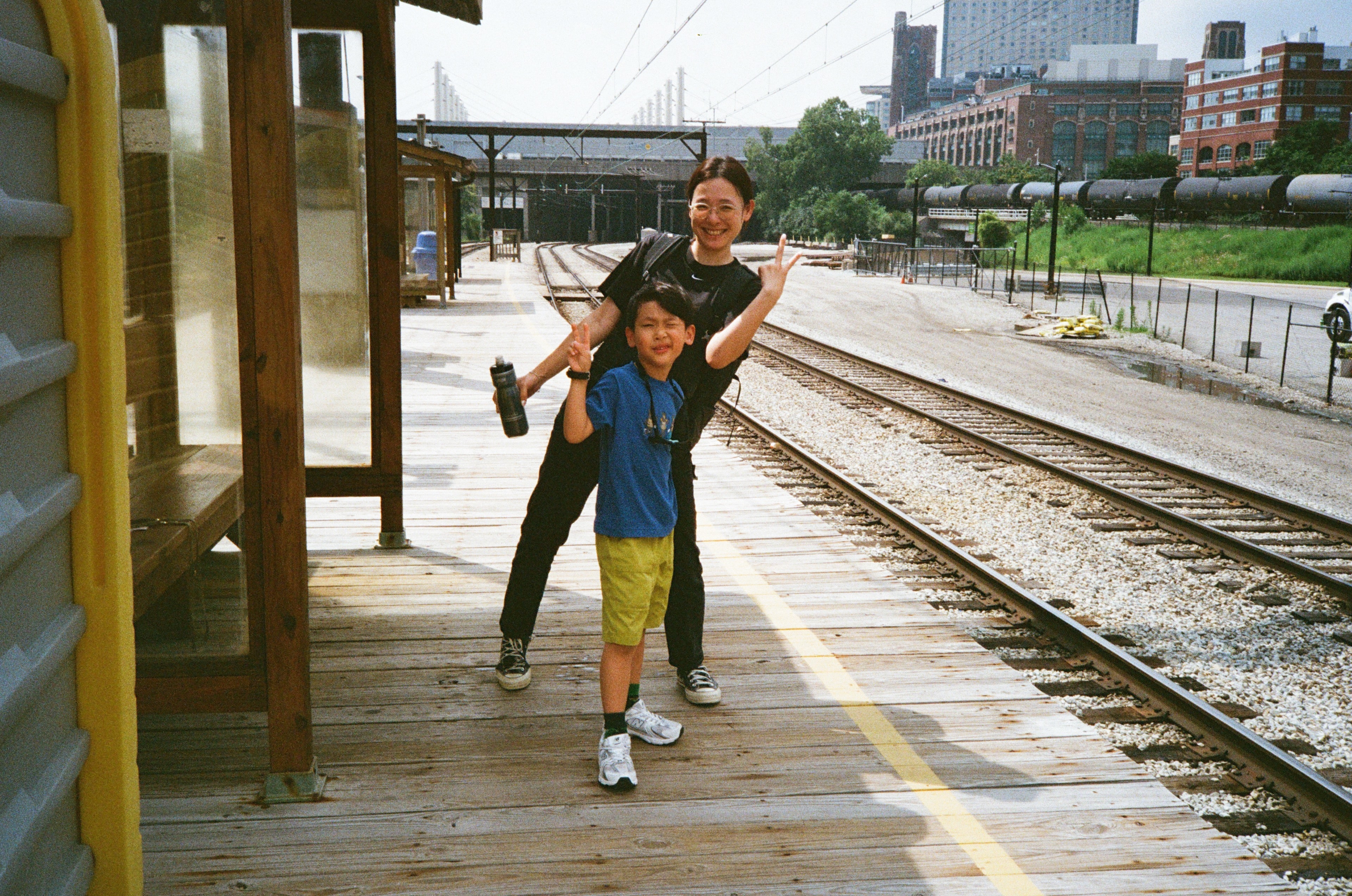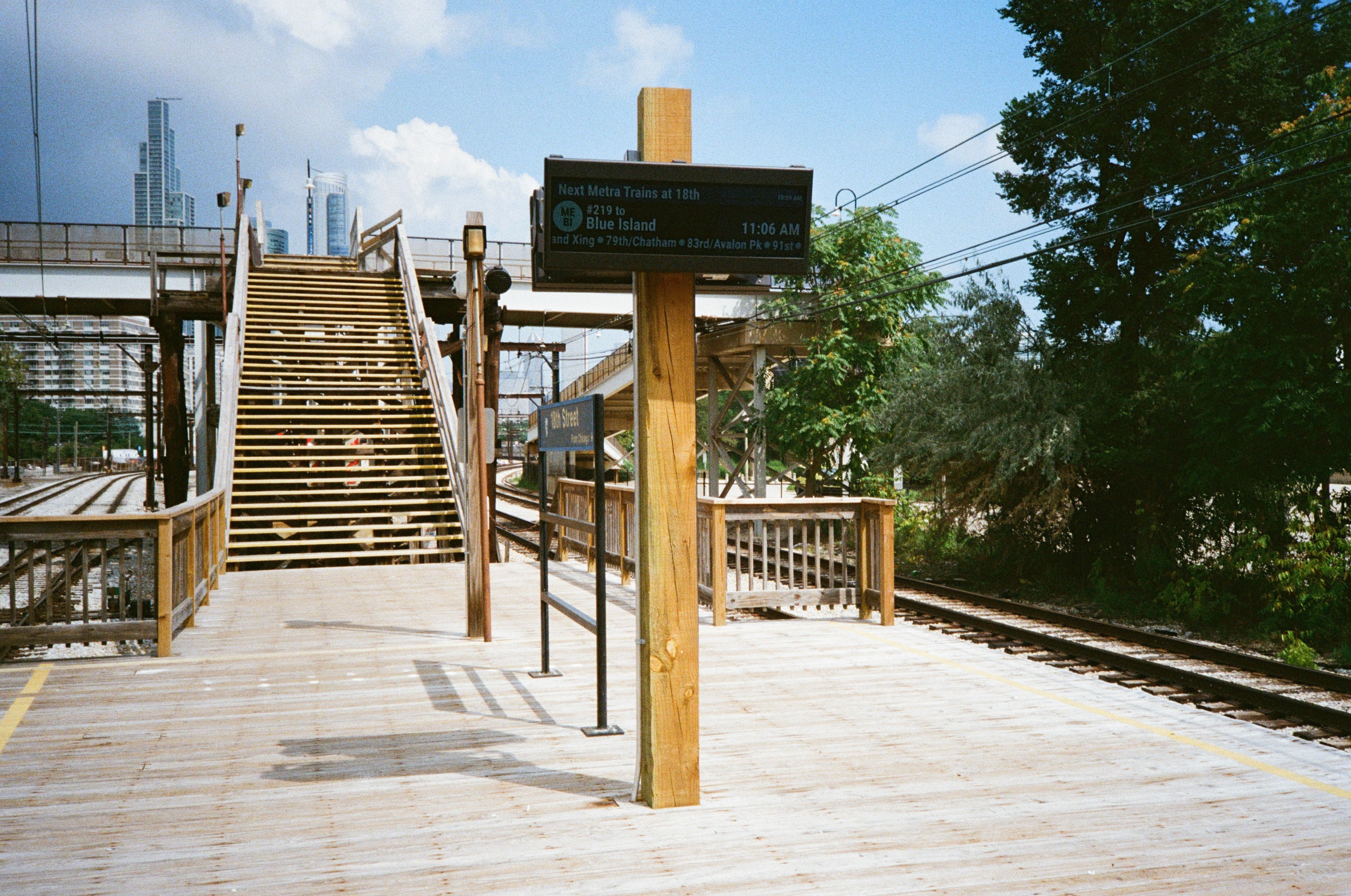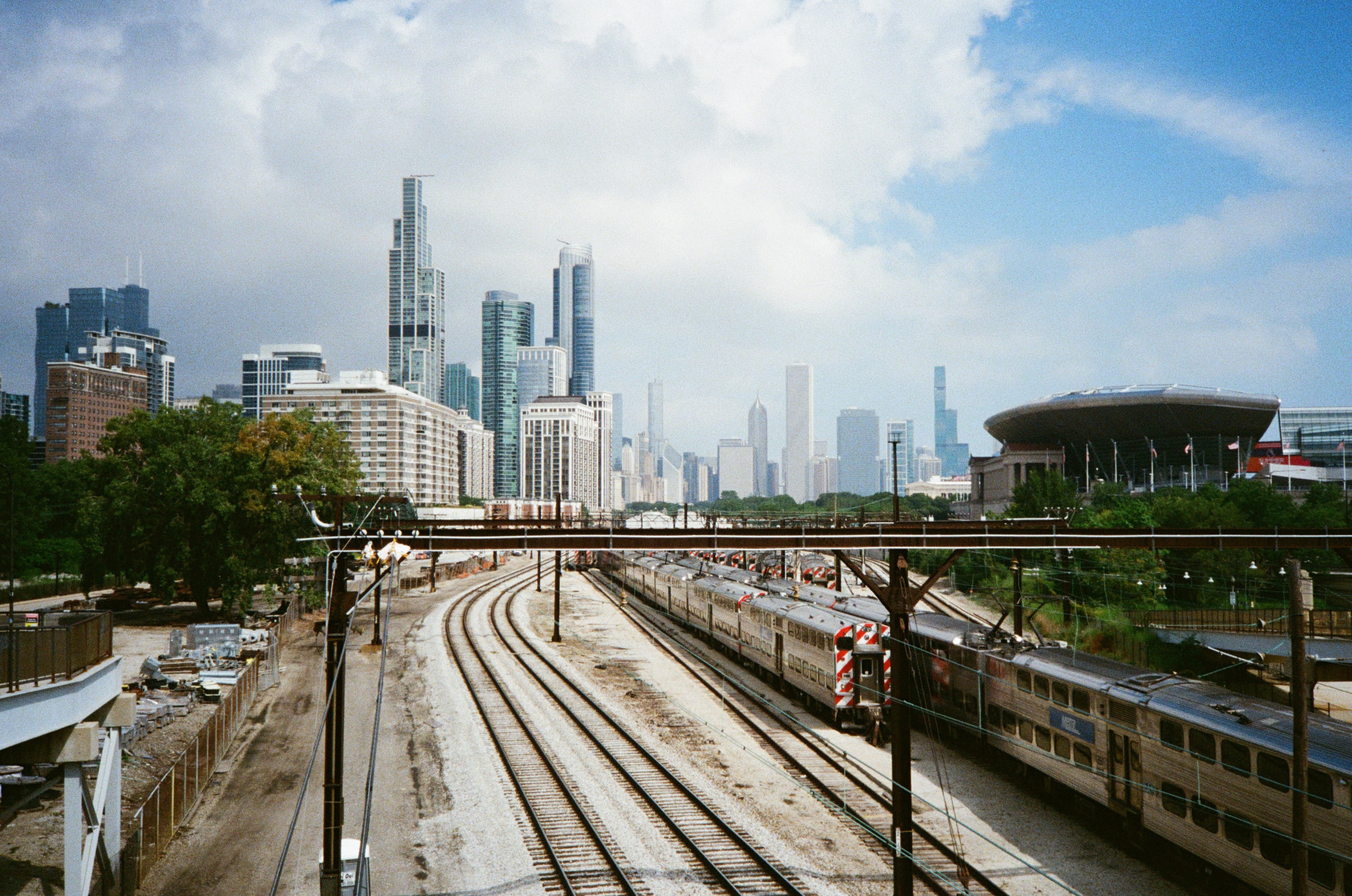 這個火車站是無人管理的,我們站在空橋上,可以望向遠方的芝加哥市中心。