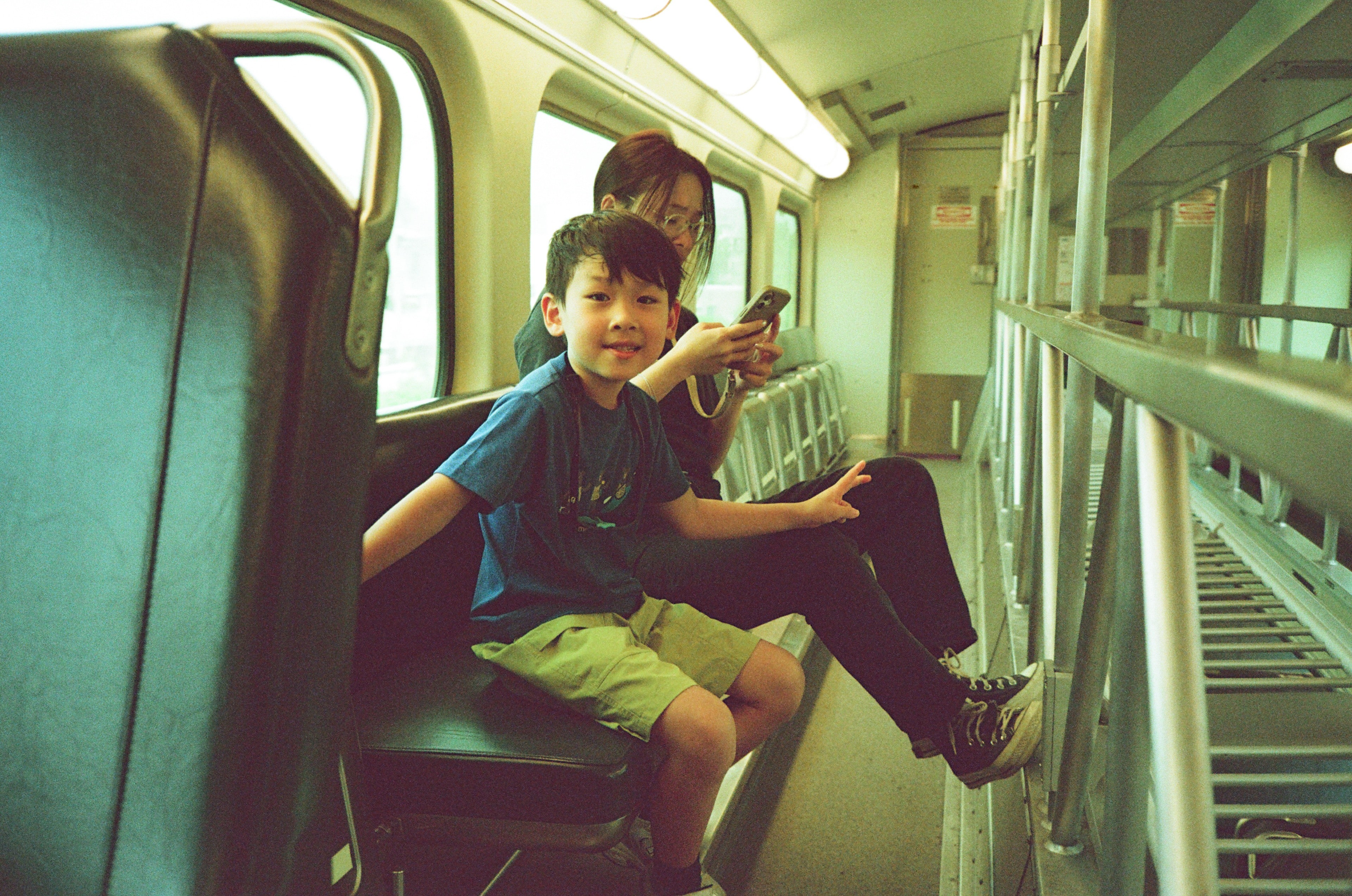 應該還是在發限動的強者我太太和 6 歲兒子。我們從下層座位換到上層座位看看,因為都沒人。