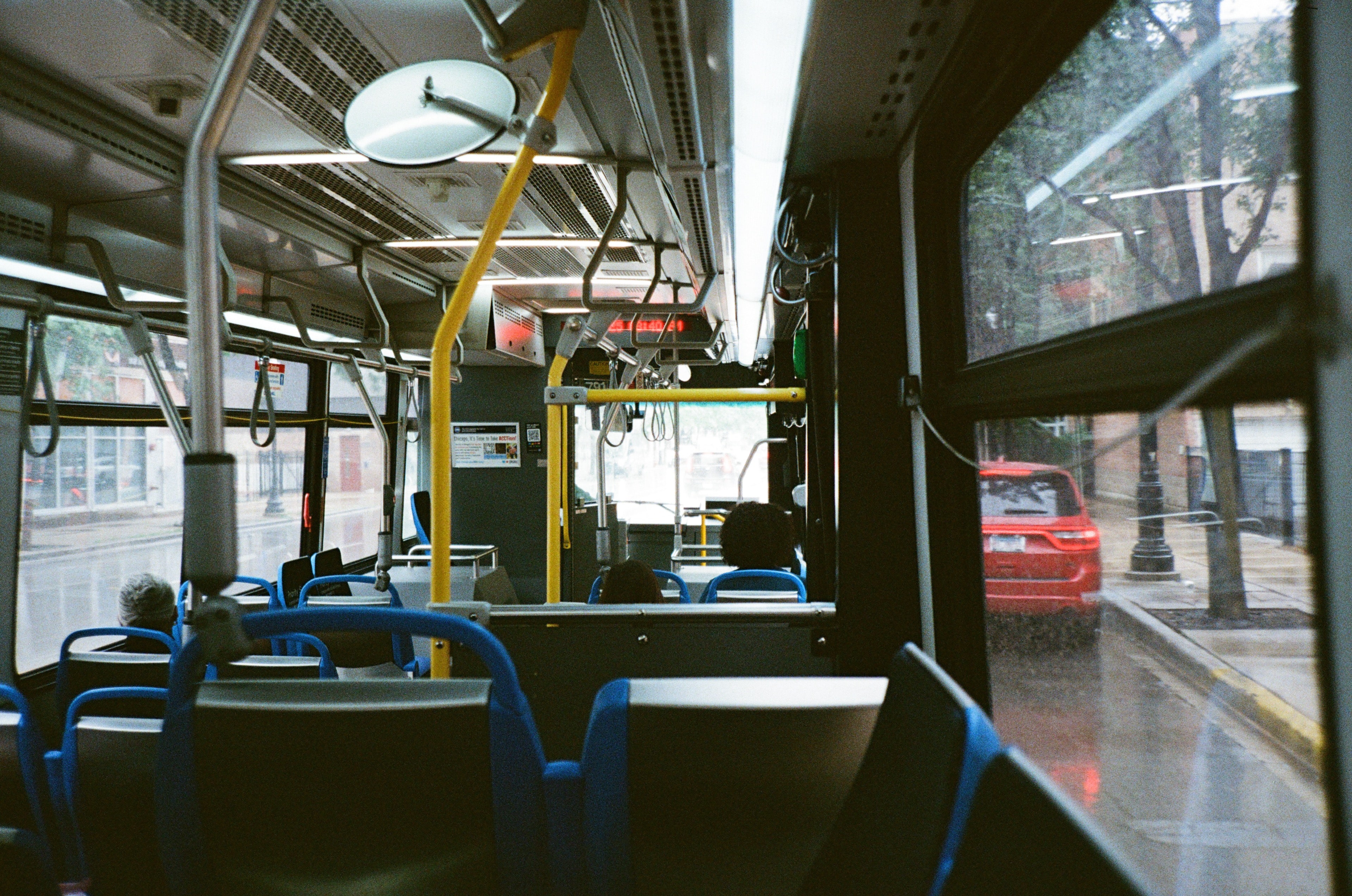其實在芝加哥搭公車還不錯,可以慢慢觀察這座城市,很特別的是,芝加哥公車的下車鈴是物理式拉繩觸發的,在畫面右側玻璃窗前的那條繩子,和台灣的按鈕式相當不一樣。