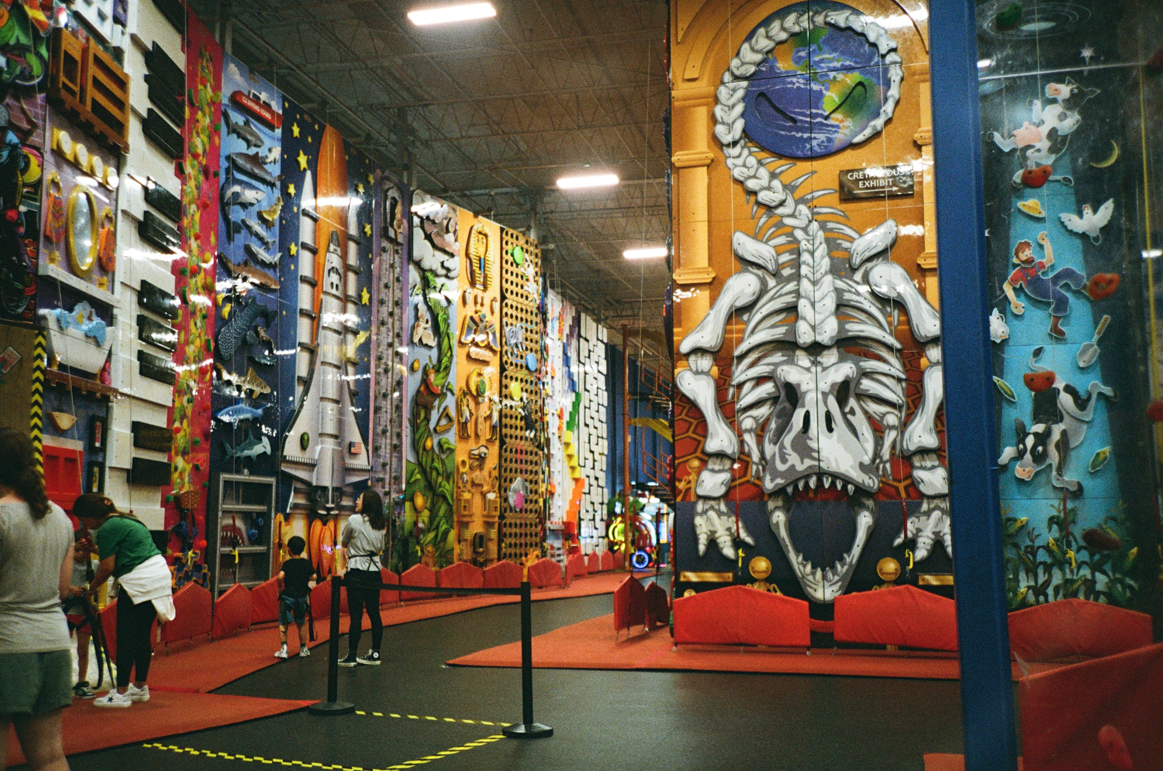 結束動物園行程,再搭 Uber 到另外一個室內遊戲場「ClimbZone Chicago」,這個室內遊戲場是以攀爬為主的遊戲場,裡面有各種有趣的攀岩設施,就像你在照片看到的那樣,有不同難度可以選擇。