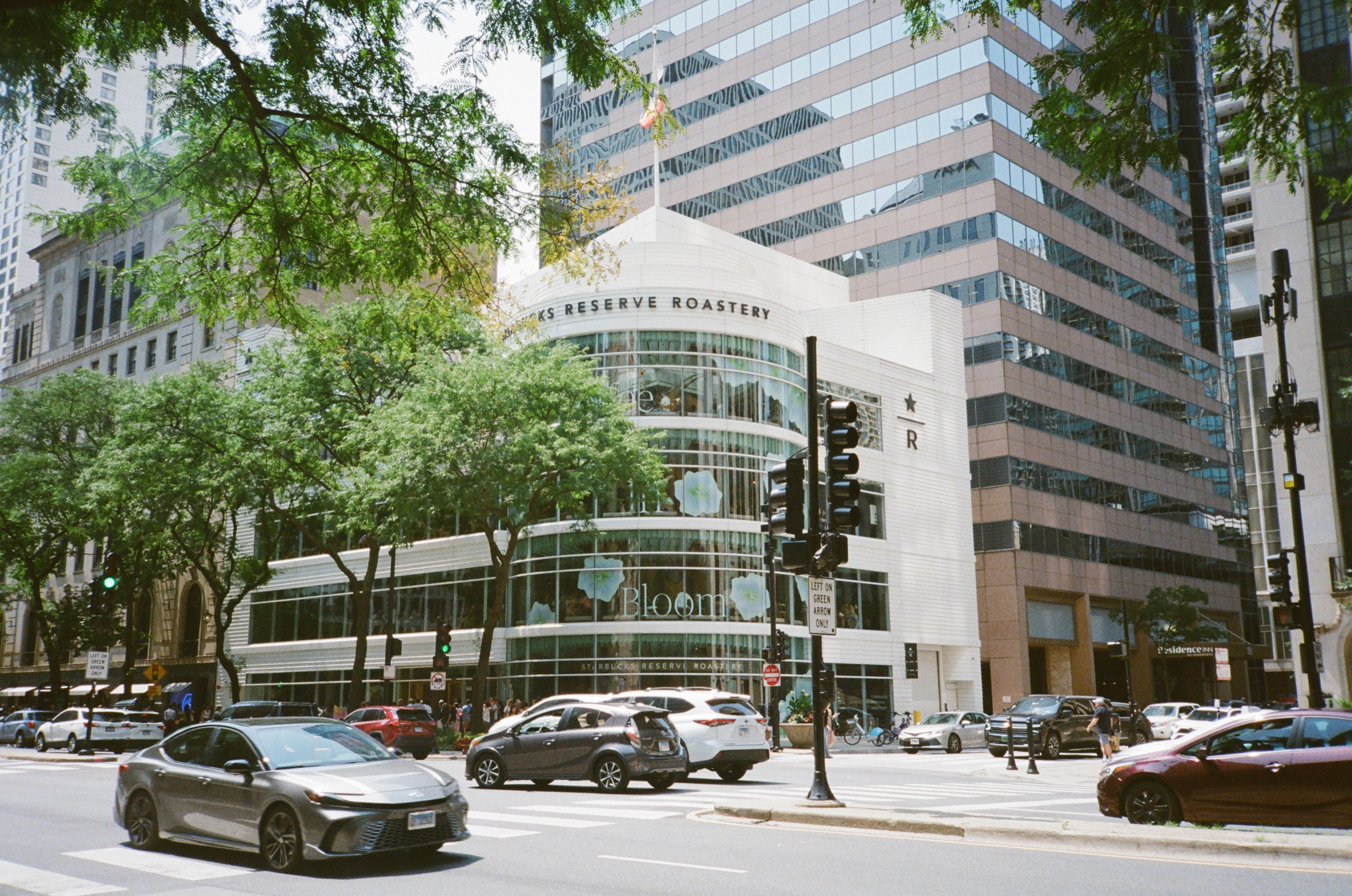 話說芝加哥的星巴克密度竟然比便利商店還高,遠方是 Starbucks Reserve Roastery。