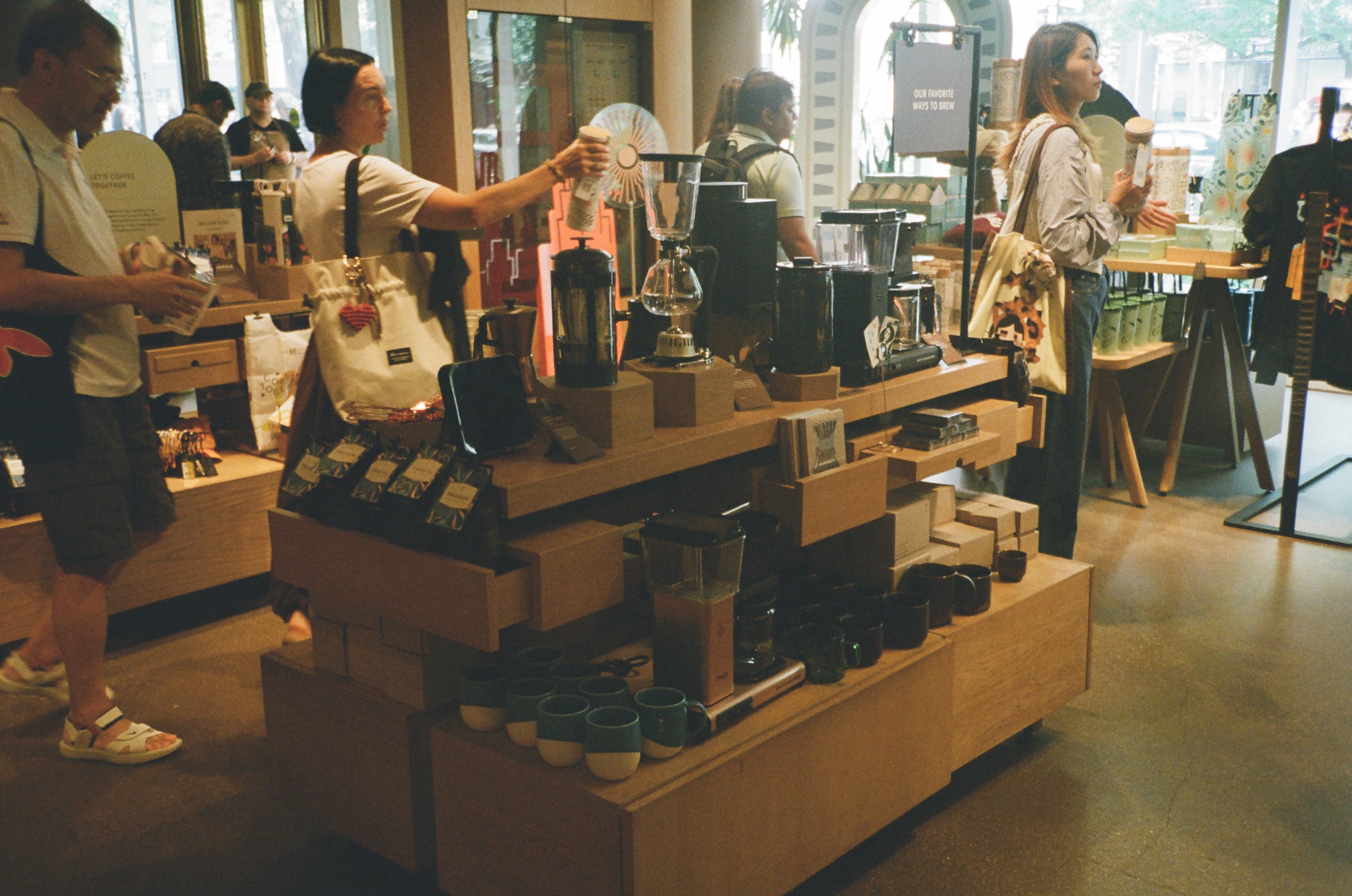 數台咖啡機同時運作,由於進來裡頭連點個餐看起來也要再排個 30 分鐘,因此我們決定看看就好,沒有要待在這邊的意思。